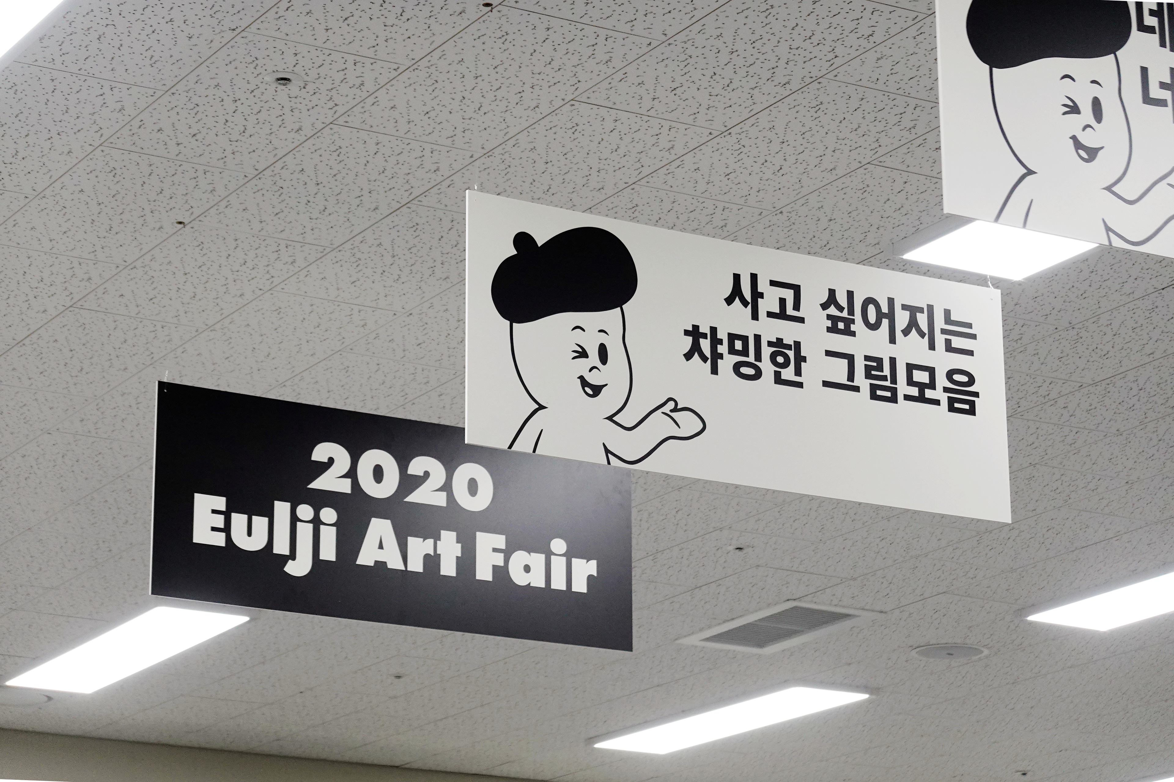 2020 Eulji Art Fair를 위한 아이덴티티 디자인입니다. 블라인드 전시를 통해 신진 작가들에게 기회를 주고, 예술작품을 보다 쉽게 접근하도록 하는 페어의 성격에 맞도록 무명 화가 'Mooha' 캐릭터를 통해 원활한 커뮤니케이션이 가능하도록 하였습니다. 이번 페어에서는 '마트'를 주 컨셉으로, 카트에 예술품을 담으며 걸어가는 'Mooha'를 메인 이미지로 전개했습니다. 공간에서 또한 카운터, 진열대, 상품표기방식, 마트 광고판 형식의 폼보드, 뽑기 머신 등으로 마트 분위기를 연출하여 아이덴티티를 유지하도록 했습니다.
