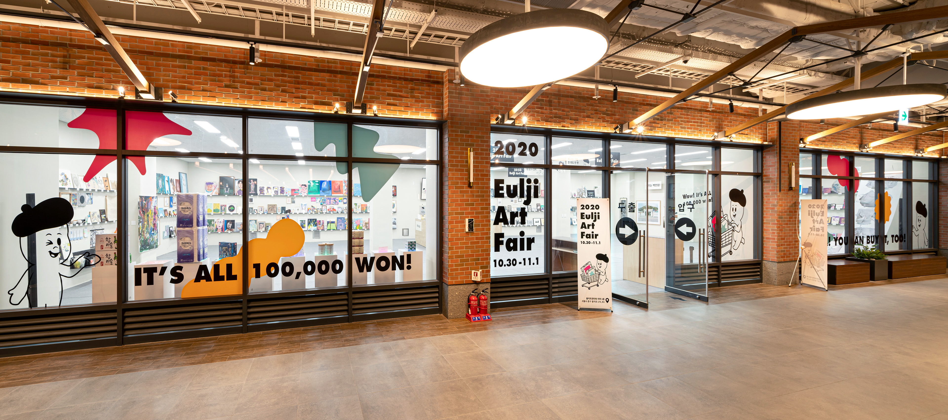 This is an identity design for the 2020 Eulji Art Fair. Through a blind exhibition, the unknown artist "Mooha" character allows smooth communication to suit the ideal of the fair, which is to give rising artists opportunities and make artworks easier to access. In this fair, the main concept is 'Mart' and the 'Mooha' character walking with the cart putting artworks inside. In the space, we also tried maintain the brand identity by creating a mood of the art with counters, shelves, product labeling methods, foam boards in the form of mart advertisements, and drawing machines.