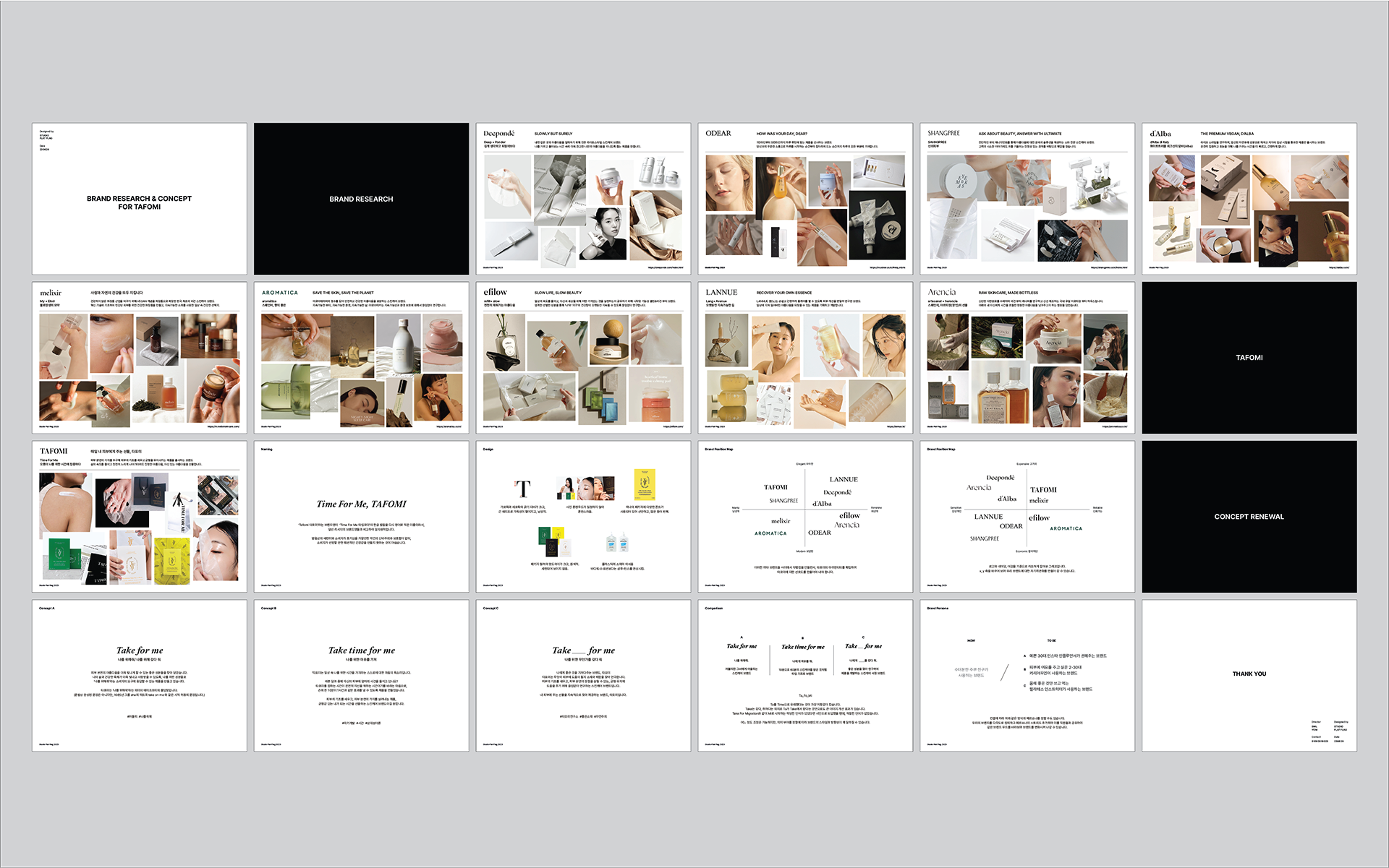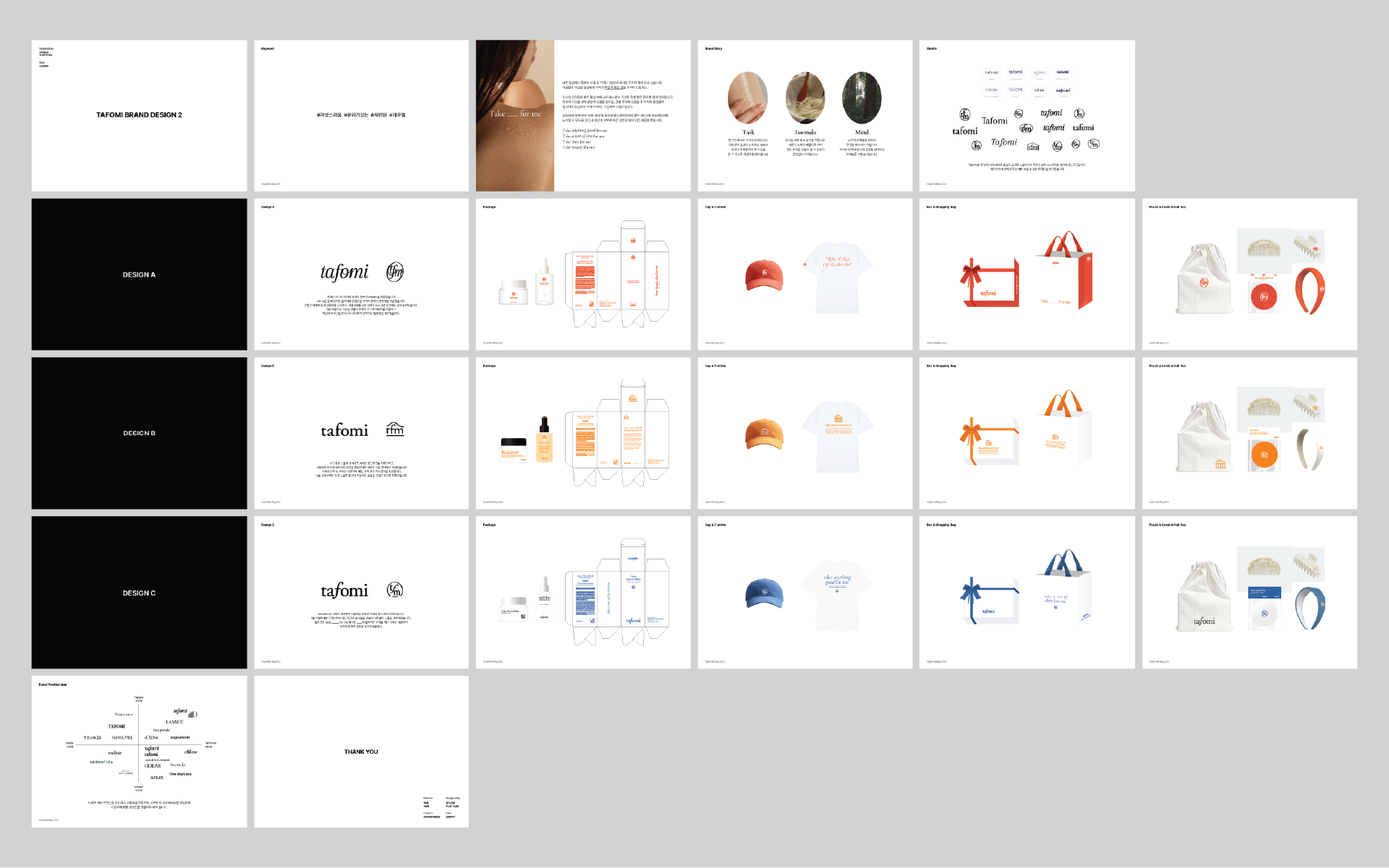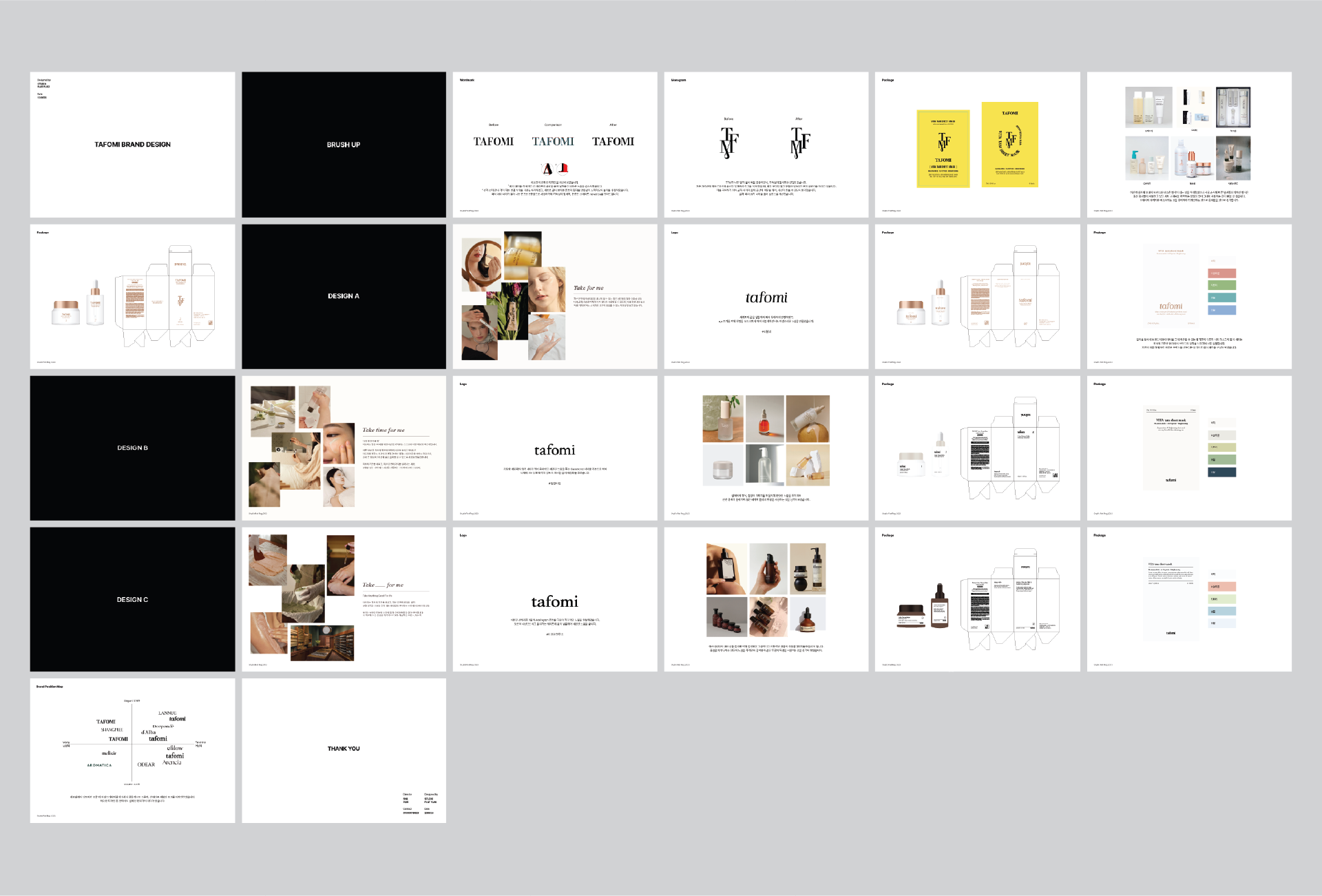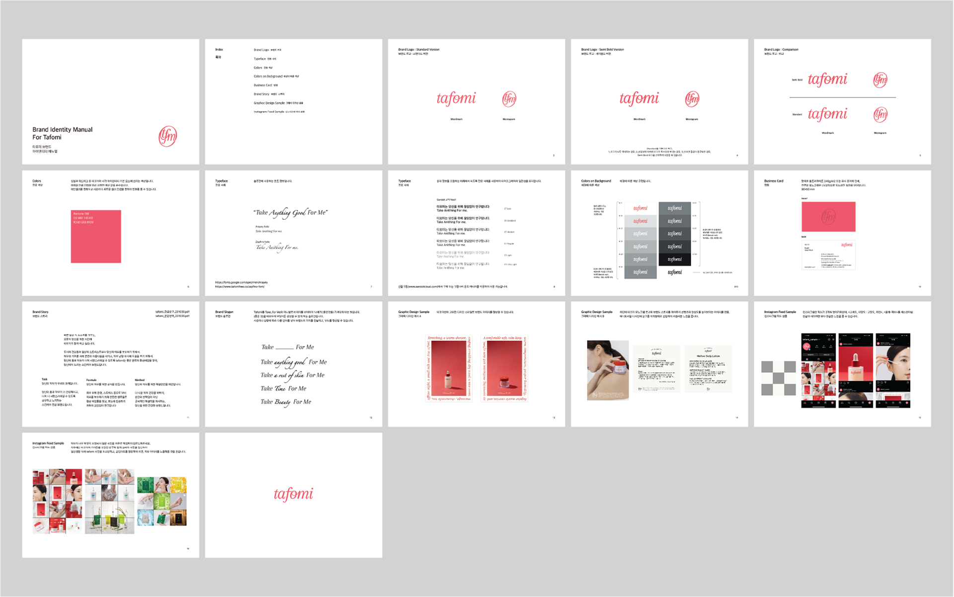 기존의 강직하고 보수적이었던 타포미의 브랜드 이미지를 보다 현대적이고 여성스러운 감성으로 탈바꿈하는 리뉴얼 프로젝트를 진행했습니다. 동종 업계의 디자인 트렌드 분석을 바탕으로 최적의 브랜드 방향성을 도출하였으며, 이에 맞춰 로고 디자인부터 브랜드 스토리, 패키지 시스템, 어플리케이션까지 통합적인 비주얼 아이덴티티를 구축했습니다. 특히 새로운 브랜드 무드를 극대화하기 위해 직접 포토슈팅을 기획·진행하여 완성도 높은 브랜드 경험을 설계했습니다.